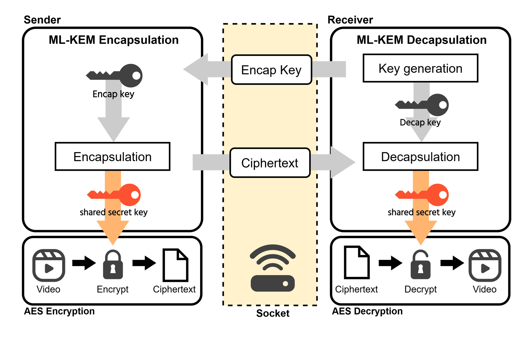 CRYSTALS-Kyber is a lattice-based post-quantum cryptosystem that is resistant to attacks by quantum computers and was selected for standardization in the NIST PQC round-3 process. In 2023, NIST published Federal Information Processing Standard (FIPS) 203 for ML-KEM, which includes a set of algorithms (Key Generation, Encapsulation, and Decapsulation) as the next version of CRYSTALS-Kyber. However, the performance and design flexibility of ML-KEM still need to be evaluated. Our system presents a high-performance and fast HW/SW codesign implementation of ML-KEM based on the NIST PQC round-3 parameters using the Vivado HLS tool. HLS tools offer various optimization benefits through the use of directives to accelerate hardware modules. Point-wise multiplication, addition, and parallelism are incorporated in the design to accelerate time-consuming operations in both AES-GCM IP and ML-KEM IP. All hardware modules are parameterized, enabling full support for runtime configuration to increase versatility. Moreover, the proposed HW/SW architecture and tightly coupled operational workflows reduce data transmission overhead between the processor and hardware modules. The hardware accelerator is implemented using reconfigurable logic on an FPGA and is integrated with a high-performance ARM Cortex-A53 processor in the Xilinx Zynq UltraScale+ architecture, supported by the PYNQ framework. To evaluate the performance of the proposed HW/SW system for ML-KEM at NIST security levels 1, 3, and 5, we used various data types, including video (AVI, H.264), images (8-bit and 24-bit color), and text files. For a fixed input size of 320 kB, the proposed hybrid cryptosystem based-on ML-KEM PQC achieved an average of 11.3× improvement in execution time compared to software implementation, with runtimes of 605 ms and 6,894 ms, respectively