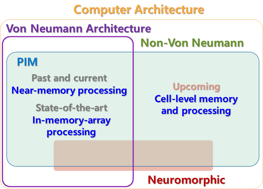 Fig. 1. Hierarchy in semiconductor memories for the neuromorphic and PIM applications.