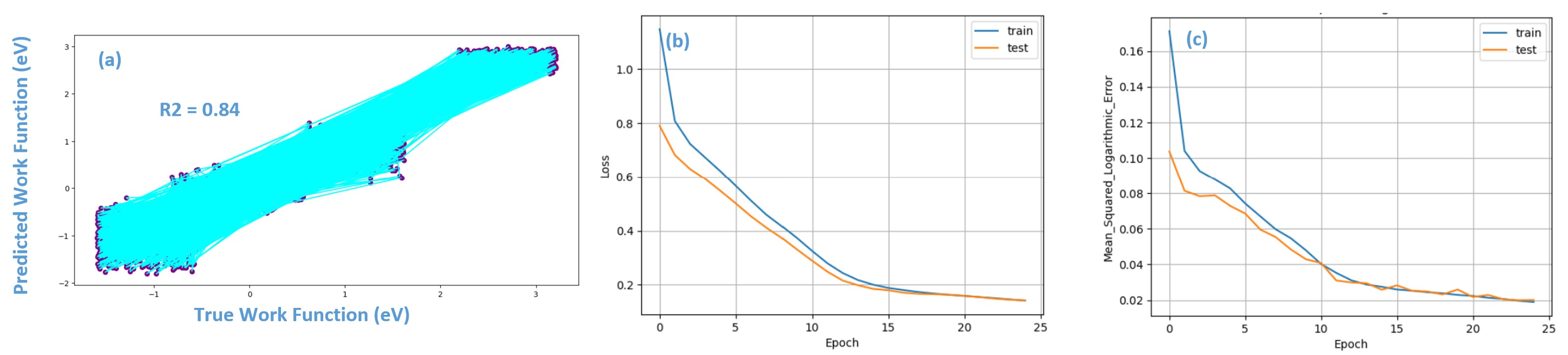 Fig. 4. Neural network Regression performance. (a) Predicted work function Vs True