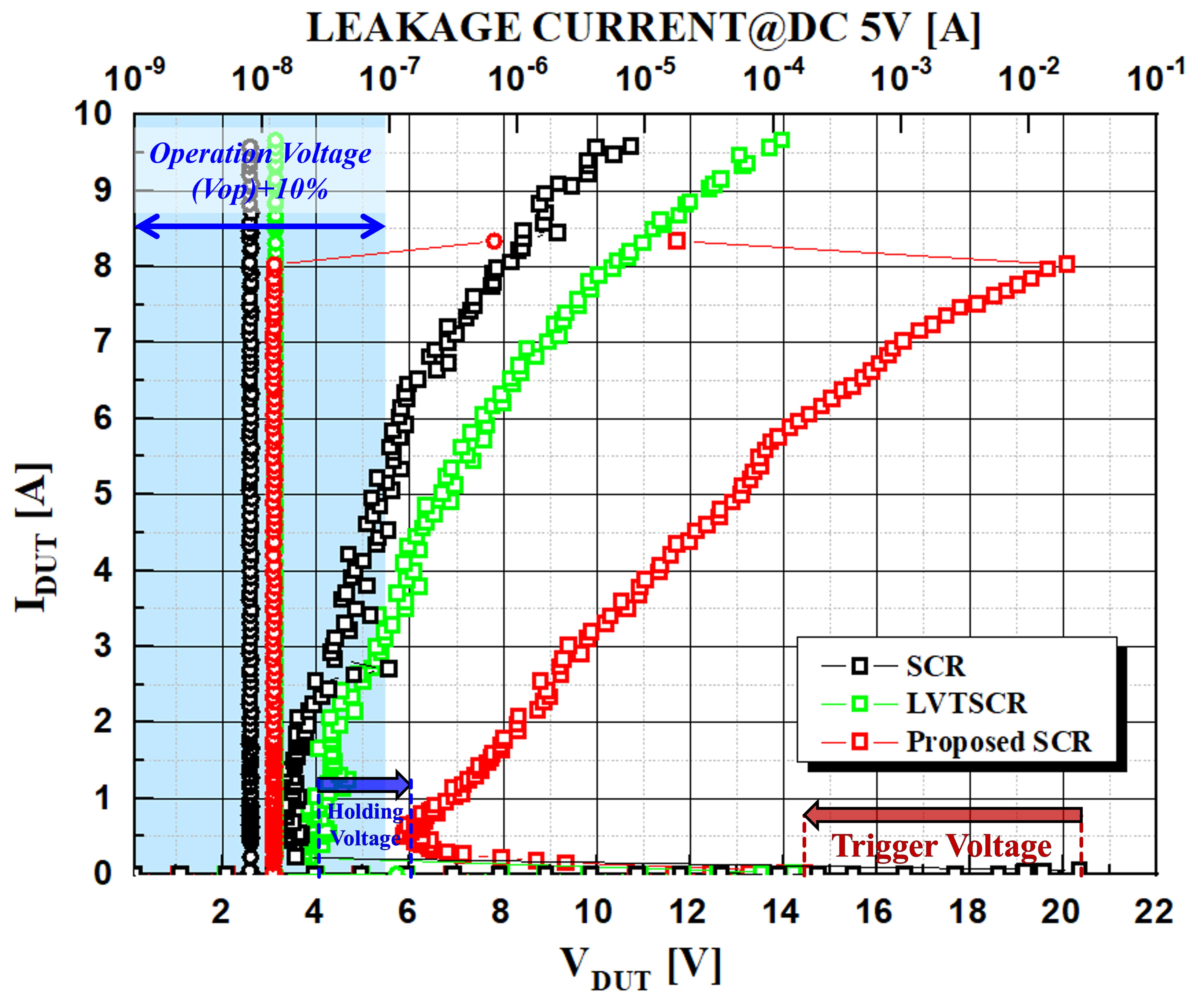 SCR and LVTSCR. Furthermore, by adding a Deep N-well, the proposed device enables