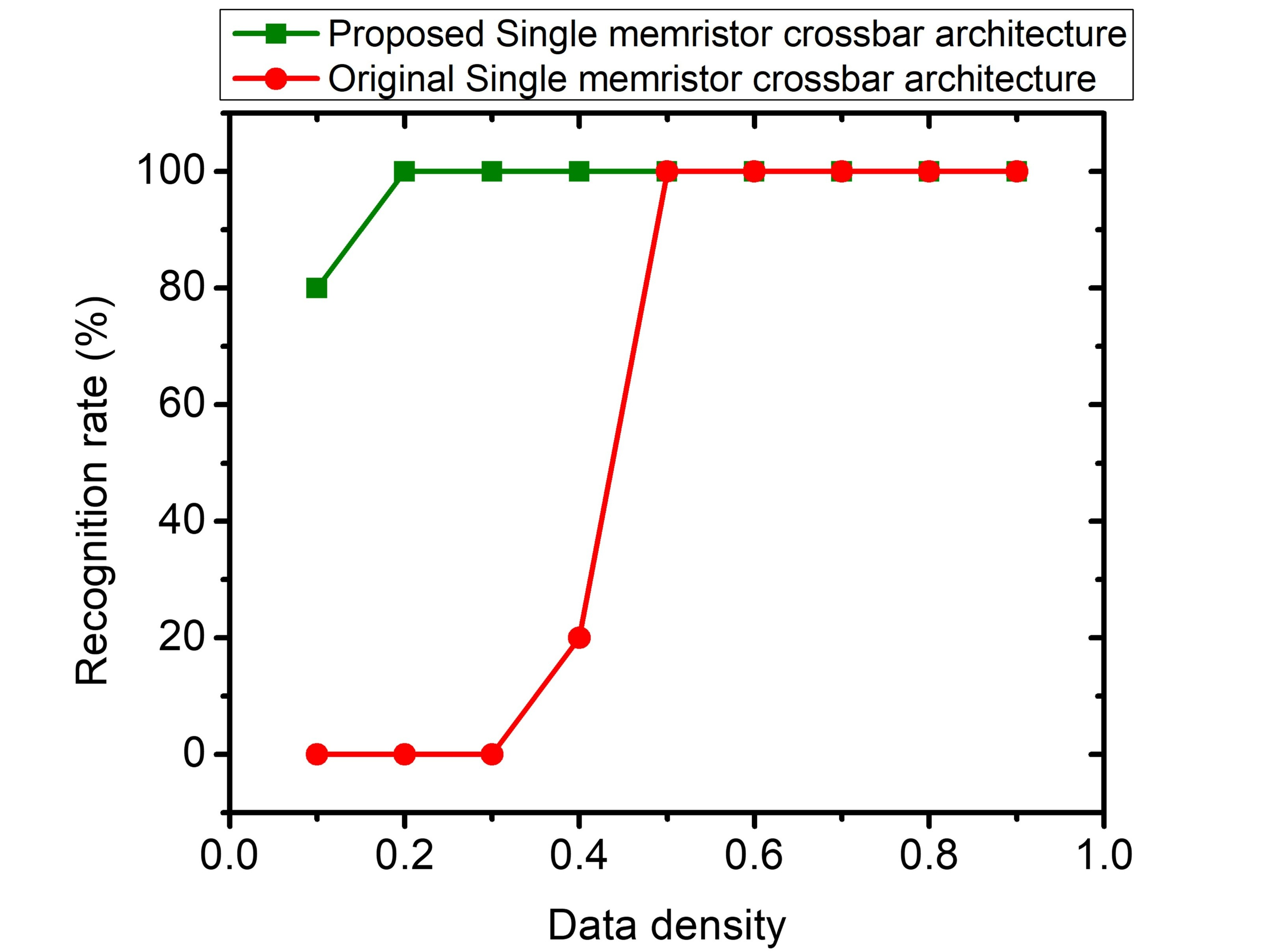 Fig. 11. Comparison of recognition rates between the proposed single memristor crossbar