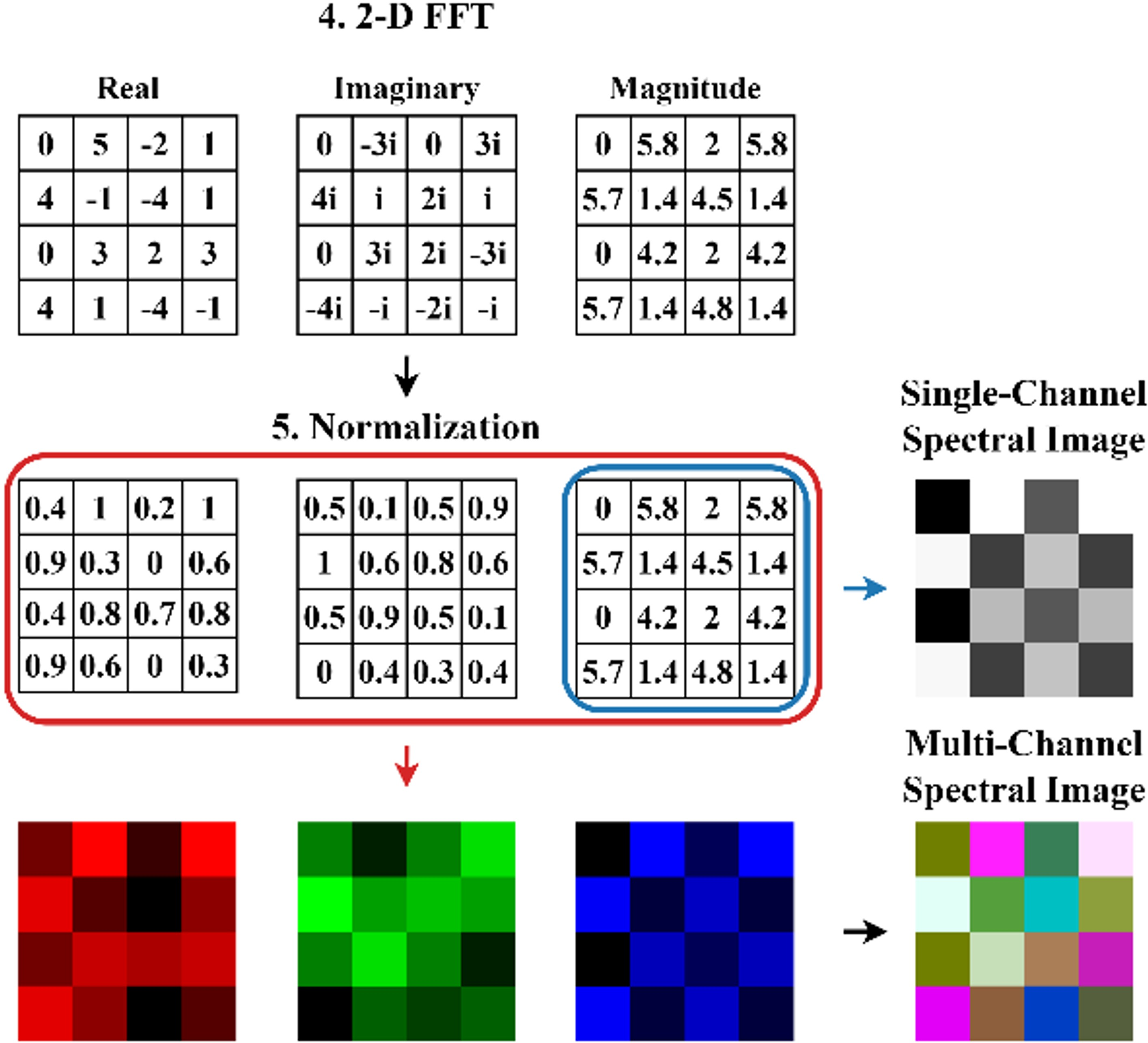spectral images derived from the magnitude part. 1-D FFT refers to the FFT using the