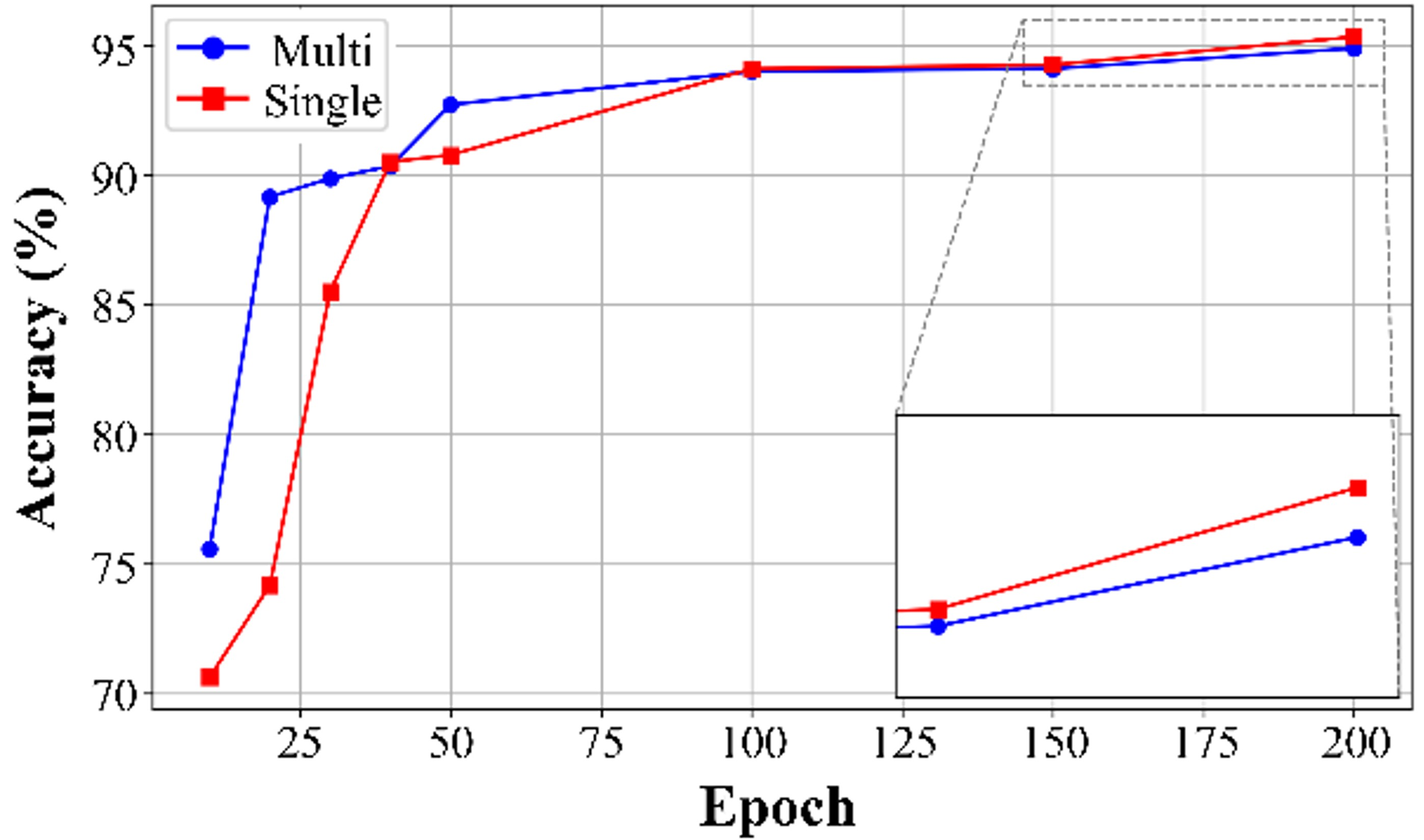 from additional channels. As shown in Fig. 4, the model using multichannel spectral images initially achieved higher prediction