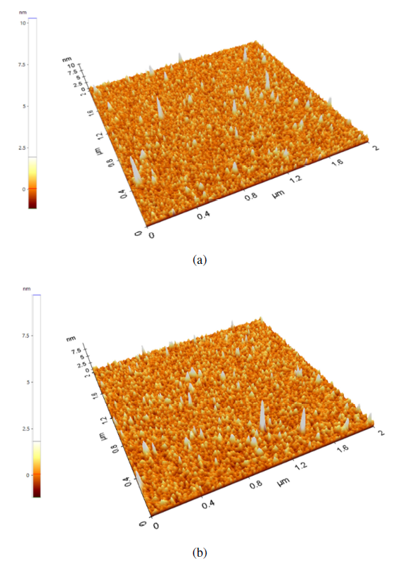 Fig. 11. AFM data at (a) No_N2_anneal, and (b) N2_anneal .