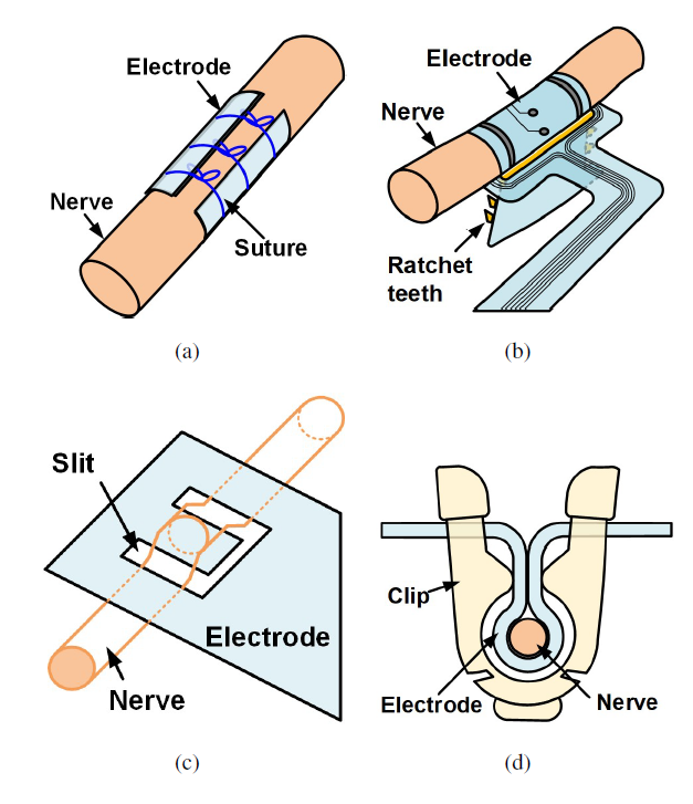 with the electrode edges. Fig. 1(d) illustrates a clip-based fixation method for securing the electrode to the nerve