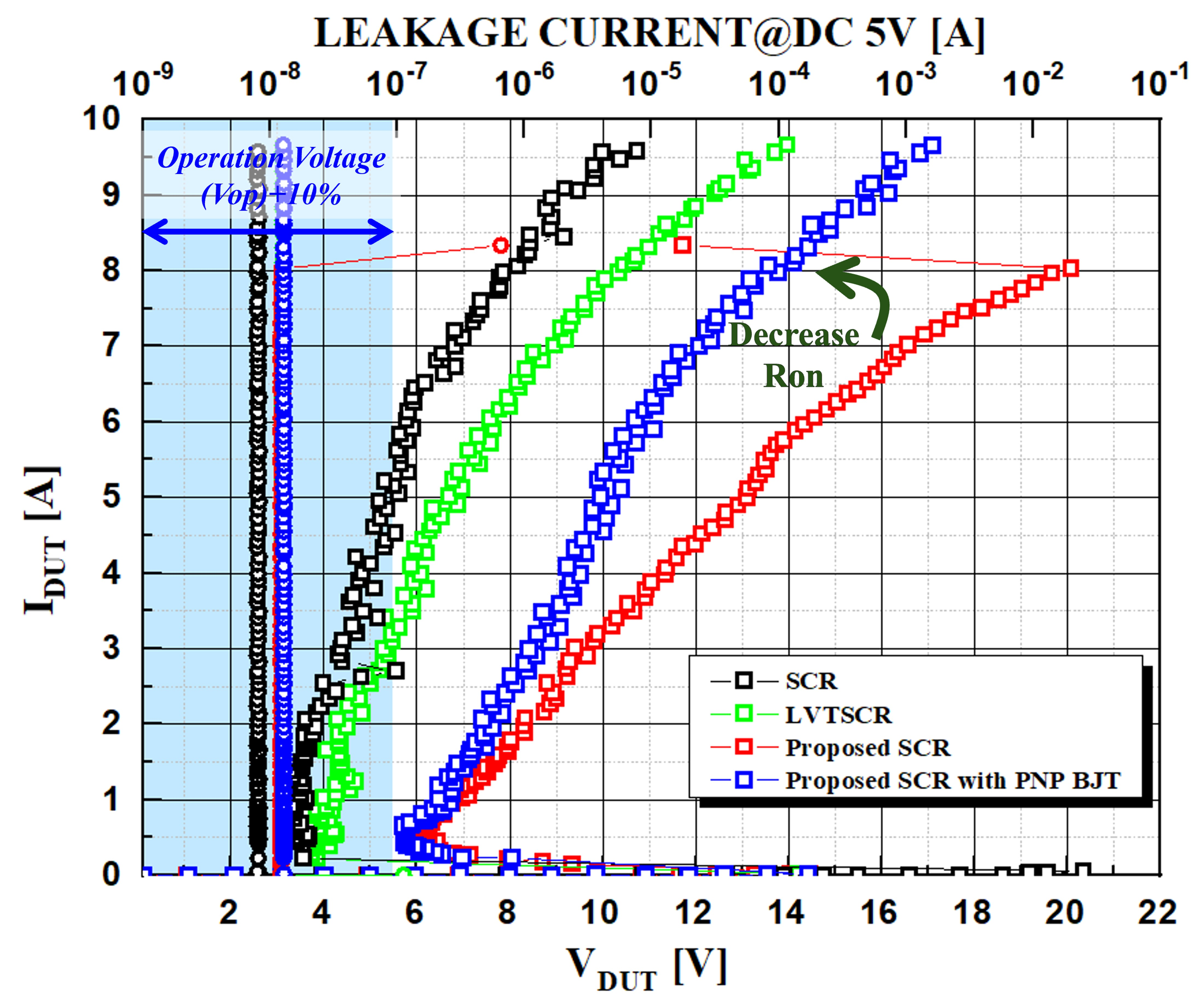 SCR and LVTSCR. Furthermore, by adding a Deep N-well, the proposed device enables